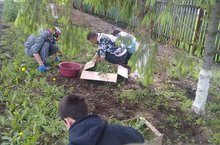 Борьба с сорняками под деревьями и кустарниками - дело трудное и неблагодарное. Не успеешь отвернуться - они уже красуются во весь рост. Сегодня воспитанники лагеря боролись с сорняками.