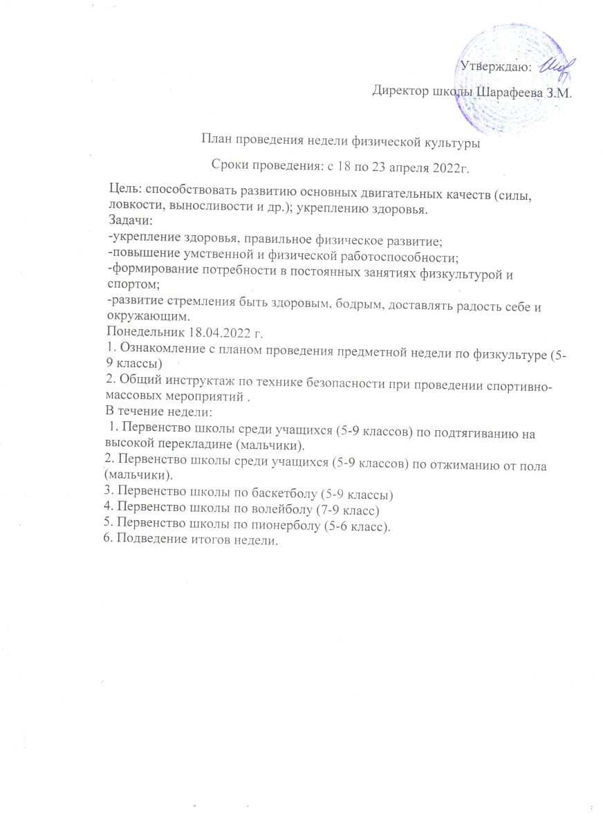 План недели физической культуры/ Физик культура атналыгы планы 18.04.2022