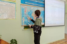 Бүген 7 нче сыйныф укучылары өчен "Евразиянең географик хәле һәм материкны өйрәнү тарихы" темасына география дәресе узды. Дәрестә укучылар контур картада материкның иң чик нокталарын эзләделәр һәм Европа һәм Азия арасындагы чикләрне билгеләделәр; океаннарны, диңгезләрне контур картасына төшерделәр.