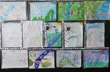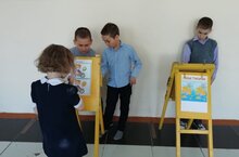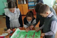 В рамках недели ИЗО и музыки в школе было организовано коллективное рисование в воображаемую страну. Обучающиеся 1 класса нарисовали облака, обмакнув кусок поролона в гуашевые краски. Обучающиеся 2 класса нарисовали из комочков бумаги деревья и траву. Обучающиеся 3 класса с помощью ватных палочек нарисовали цветы. Обучающиеся 5 класса, используя шаблон круга, нарисовали зверей и птиц. Обучающиеся 6 класса с помощью восковых мелков нарисовали рыб и лебедей. Обучающиеся 7 класса нарисовали дождь.