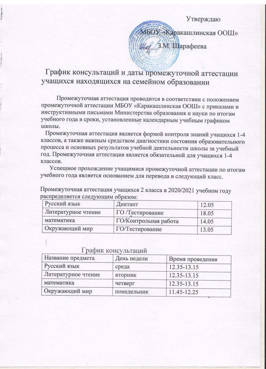 График консультаций и даты промежуточной аттестации учащихся, находящихся на семейном образовании