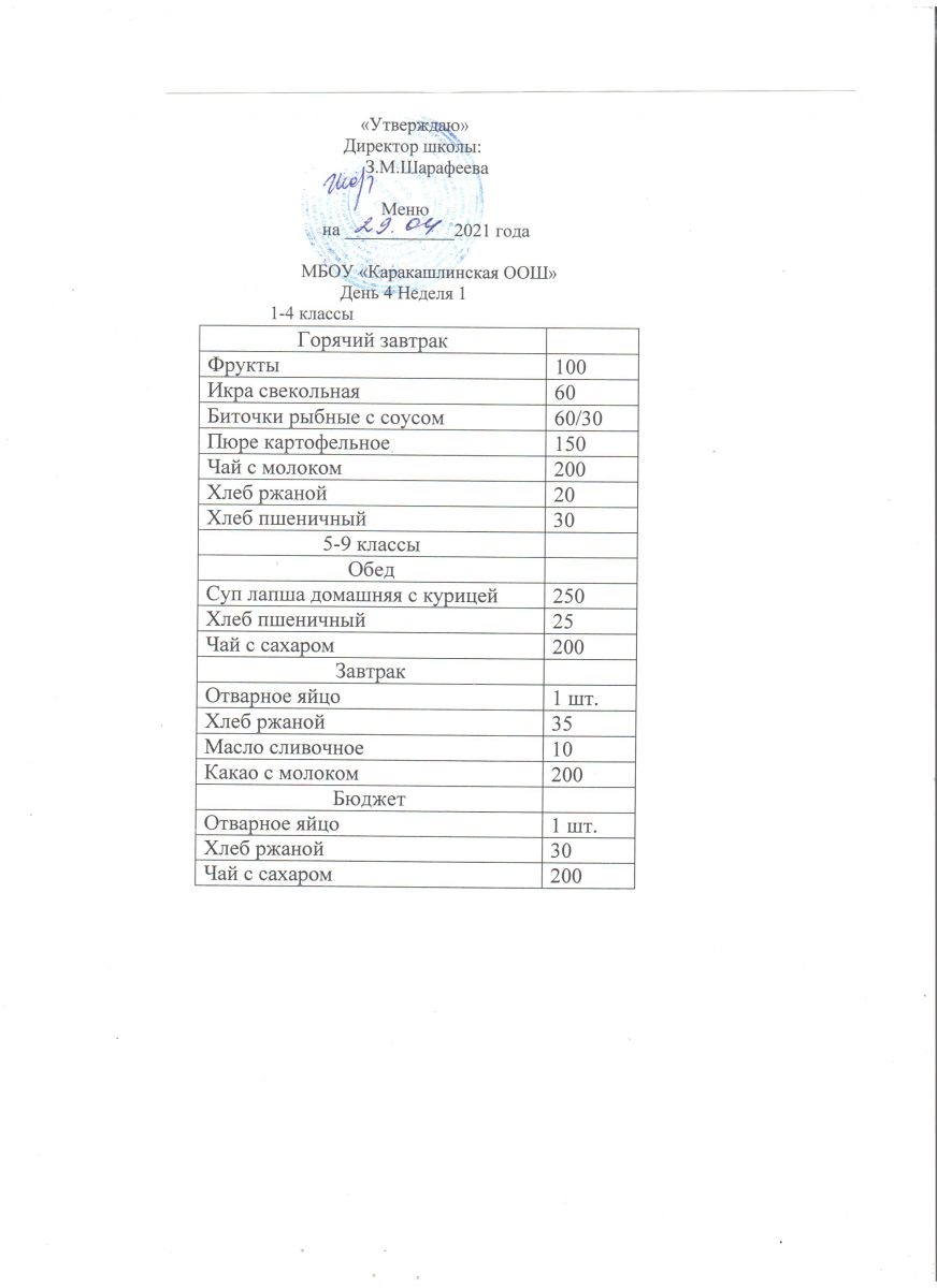 Акт об отмене питания в 1-9 классах на 24.02.2021 год.