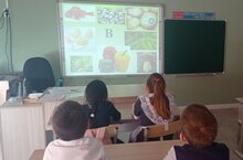 Классный час в 5-м классе в рамках недели школьного питания «Здоровое питание-отличная учеба». Разговор был о полезных и вредных продуктах, о витаминах, об основных правилах правильного питания.