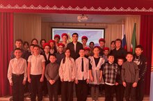 Ватанны саклаучылар елы хэм бэйрэме унаеннан, укучылар махсус хэрби операциядэ булган Миниахметов Айнур белэн очрашты. Ул укучыларга бик файдалы кинэшлэр бирде, мэктэп елларындагы истэлеклэре белэн уртаклашты, хыялларынын тормышка ашуын телэде. Мэктэп музеендагы материаллар белэн танышты. Укучылар батыр егетебезгэ зур соклану белэн карады.