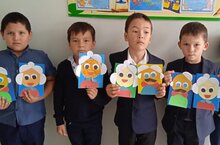 1 нче сыйныф укучылары дәрестән тыш эшчәнлек вакытында әби-бабалары өчен открыткалар әзерләделәр