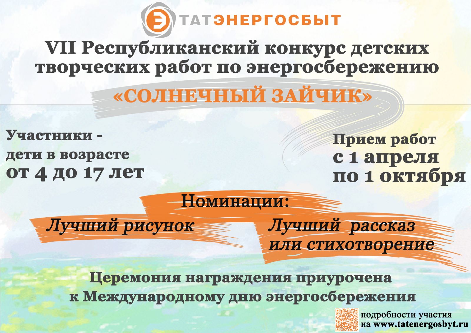 1 апреля 2016 года стартует VII Республиканский конкурс детских творческих работ по энергосбережению «Солнечный зайчик». В этом году руководством компании было принято решение приурочить его к Международному дню энергосбережения, который ежегодно отмечается 11 ноября.