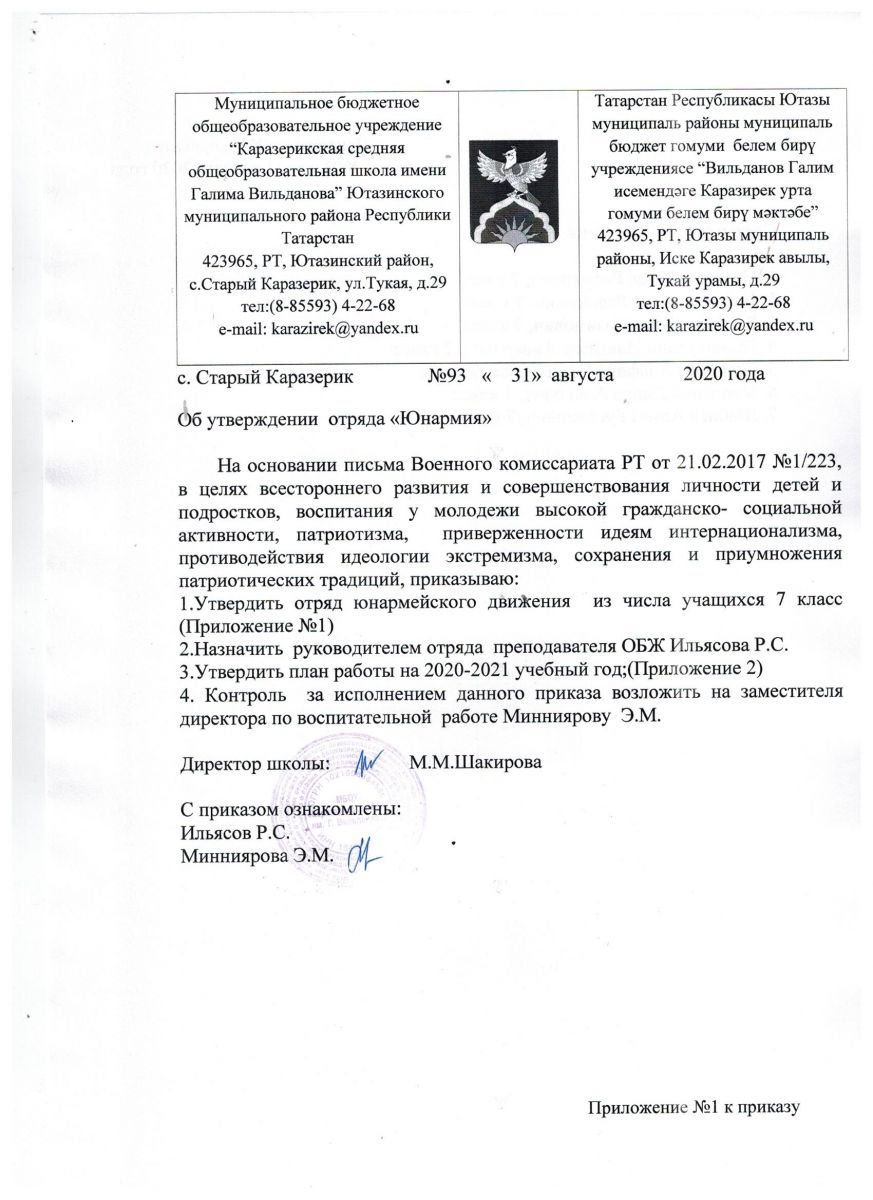 Приказ о создании отряда на 2021-2022 учебныцй год