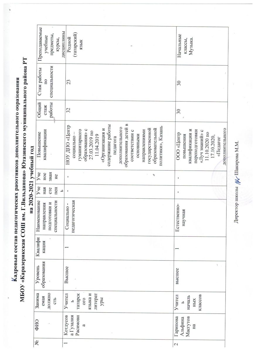 Кадровый состав педагогов дополнительного образовани за 2020-2021 учебный год