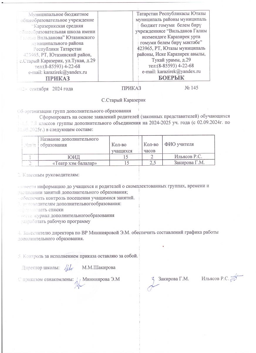 Приказ о создании дополнительных объединений за 2024-2025 учебный год