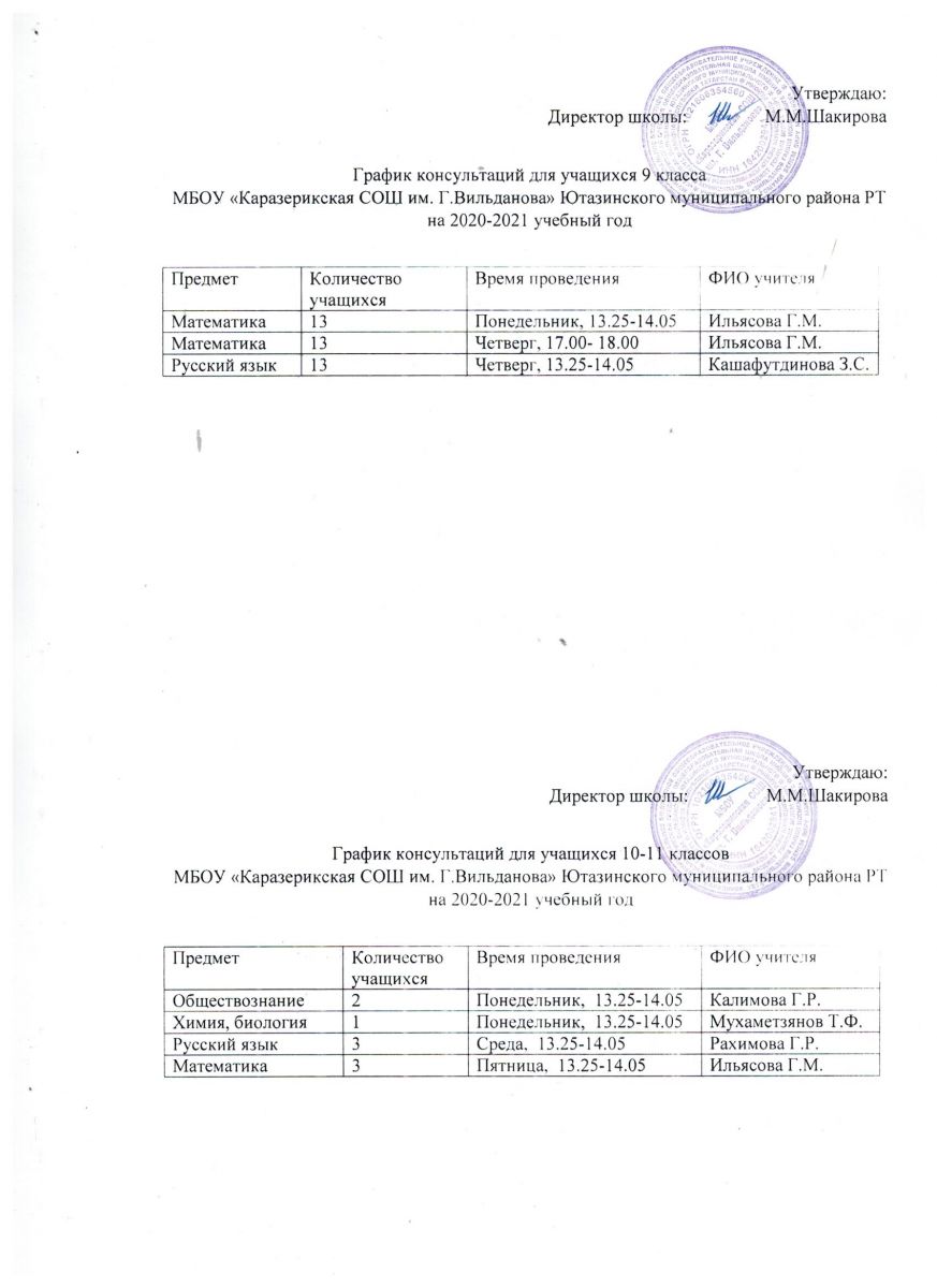 График консультаций для учащихся 9,10-11 классов на 2020-2021 учебный год