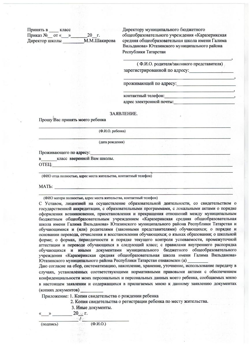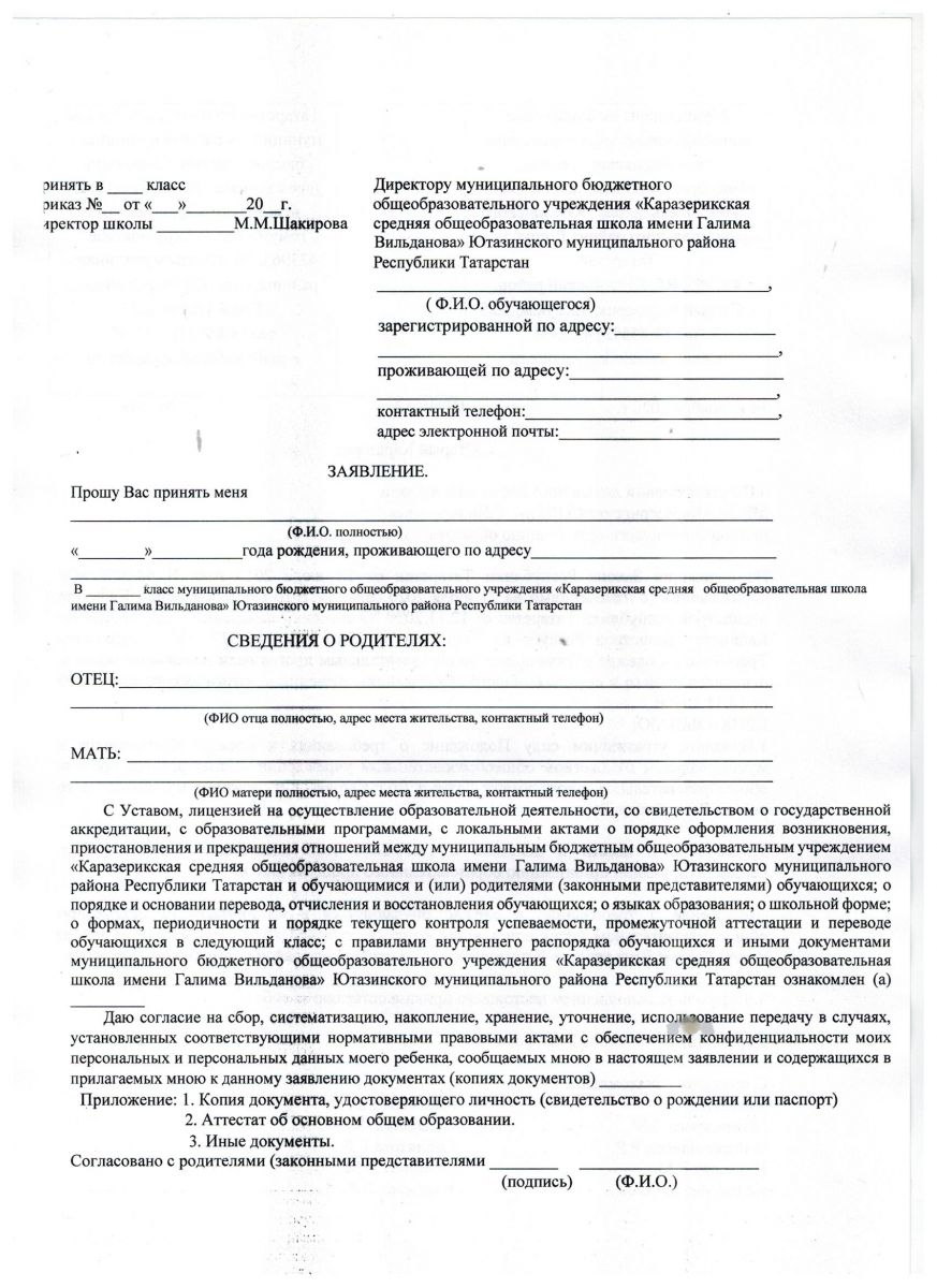 Порядок приема на обучение по образовательным программам начального общего, основного общего и среднего общего образования в МБОУ "Каразерикская СОШ им.Г.Вильданова" Поcмотреть
