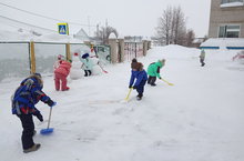 Ишегалдын кардан чистарту. / Уборка двора от снега.