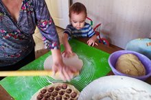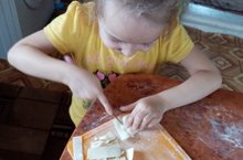 Герасимова Дарина әбисенә пәрәмәч пешерергә булыша.