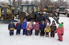 Проект кысаларында һәм ел буена балалар әти-әни, әби бабайларының хезмәте белән танышалар. Бүген балалар белән гаражда эшләүче әтиләр янына сәхәткә бардык.