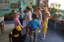 (В середине круга мальчик (девочка) с завязанными глазами. Дети ходят по кругу и поют.)Ты загадку отгадай,Кто позвал тебя, узнай!Дети поочередно называют стоящего в кругу по имени, тот должен догадаться, кто его позвал. -