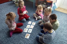 Игра: "Кто убежал". (Перед детьми лежат картинки диких животных. Дети закрывают глаза, а один ребенок в это время убирает одну картину. Дети открывают глаза и угадают какое животное убежало.)