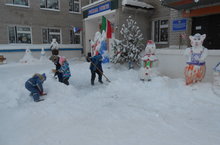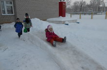 Спортивные упражнения зимой "Катание с ледяной горки на салазках".