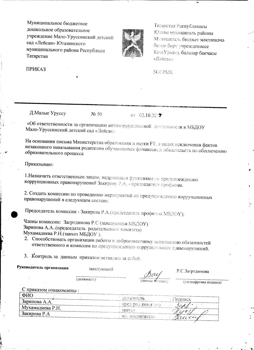 Приказ по антикоррупционой деятельности за 2018-2019 год