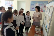 В рамках недели начальных классов и дня памяти Сталинградской битвы руководитель музея Галимов Р.З. ознакомила учащихся со стендом и с экспонатами школьного музея.