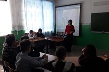 Учитель истории и обществознания Галимов А.Р. провел урок "Образование ТАССР". На урок была приглашена председатель совета ветеранов Ташкичуйского сельского поселения Шакирзянова Г.А.