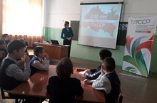 Учитель начальных классов Мухаммадиева Д.З. провела для 1-4 классов классный час "100 лет ТАССР". На урок была приглашена председатель совета ветеранов Ташкичуйского сельского поселения Шакирзянова Г.А.