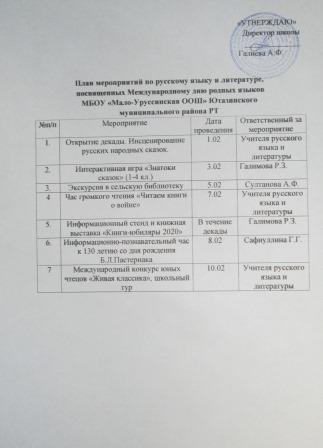 План мероприятий по русскому языку литературе, посвященных Международному дню родных языков 04.02.2020
