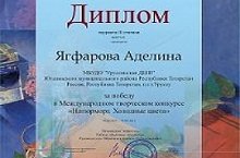 Поздравляем Ягфарову Аделину и преподавателя Ибрагимова Камиля Набиахмедовича со званием Лауреата 3 степени в Международном творческом конкурсе «Натюрморт. Холодные цвета».