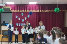 На общешкольной линейке состоялось награждение победителей, призеров и участников Республиканской олимпиады школьников среди первоклассников. Советник по воспитанию поздравила участников и победителей конкурса рисунков по Безопасности дорожного движения среди 1 классов.