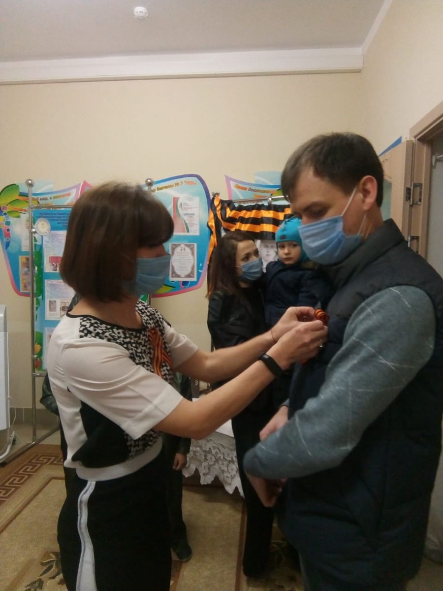 Акция "георгиевская ленточка" стартовала в этом году 27 апреля. Наш детский сад тоже принял участие в данной акции. Прикрепляя черно-оранжевую ленту на груди, мы выражаем благодарность нашим ветеранам - они выстояли, пообедили в Великой Отечественной войне и спасли мир от фашизма - и отдаем дань памяти тем, кто не вернулся с поля боя.