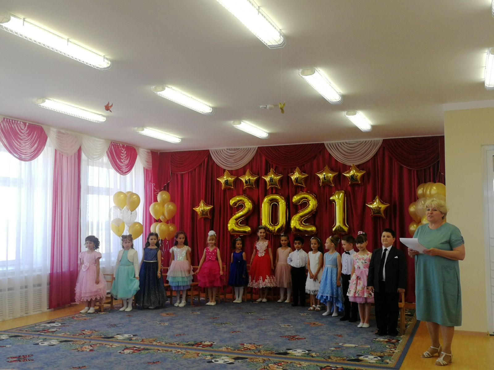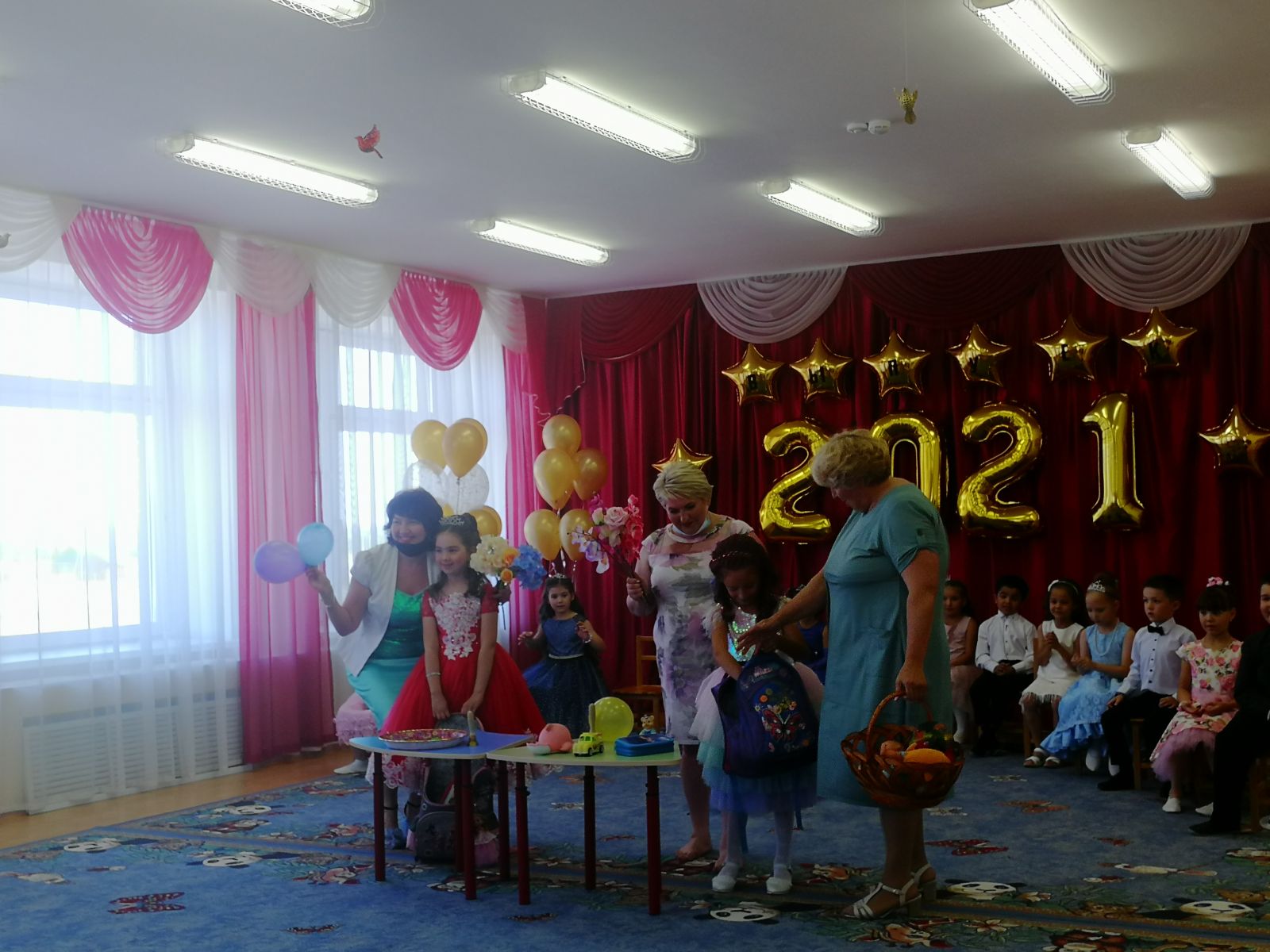 28 мая в подготовительной к школе группе и в детском саду царила необыкновенная атмосфера. Девочки в воздушных платьицах, мальчики в строгих костюмчиках собрались в музыкальном зале. Родители то и дело поправляли пышные наряды своим чадам и беспрерывно щелкали фотоаппаратами. И те, и другие заметно волновались: ведь это было очень важное для ребят событие – первый в жизни выпускной бал. С этим праздником детей поздравляли все сотрудники детского сада, родители, и приглашенные на праздник гости. . Кульминацией же всего праздника стало вручение дошкольникам дипломов об окончании детского сада.