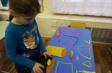 С целью закрепления знания плоских и объемных геометрических фигур было проведено игровое занятие. На котором дети закрепили названия геометрических фигур, умение классифицировать фигуры по разным признакам: величине цвету, форме, закрепили умение составлять геометрические фигуры из частей.