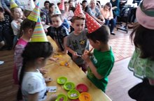 Детям был продемонстрирован видеоролик о том, как впервые была запущена в космос ракета со станции Байконур. Было рассказано о первом в мире космонавте, покорившем космическое пространство.