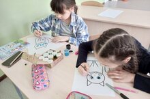 Объединение "Мозаика" на базе НОШ #1. Рисуем милых котиков в технике тычкование. 07.02.2023