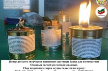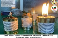 Муниципальное бюджетное учреждение «Центр детского творчества» Ютазинского муниципального района Республики Татарстан совместно с волонтерами «Лига активистов» Благотворительного фонда поддержки молодого поколения и социальных инициатив «БлагоДарение» организует сбор железных банок, для изготовления блиндажных свечей. В дальнейшем они будут отправлены в зону СВО. При изготовлении свечи в банки помещается закрученный картон, который заливается парафином. Такие блиндажные свечи горят долго и от них исходит тепло. Принимаются железные банки диаметром от 8 сантиметров из-под зеленого горошка, кукурузы, детского питания. Наружные стенки должны быть чистыми, без краски и этикеток, сухими внутри. 27.01.2023