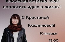 Классная встреча «Как воплотить идею в жизнь».???? ⚡ Друзья, УЖЕ 10 января в 15:00⌚ в рамках проекта РДШ "Классные Встречи" в РДК в творческом пространстве Место встречи состоится встреча с Кристиной Каслановой! ???? Если ты раньше не слышал о Кристине, то читай внимательно ⬇⬇⬇ Кристина Касланова– творческая личность. Каждое лето она проводила с семьей, и тогда у нее появилась идея организовать праздник для жителей поселка. Со временем это переросло в большой проект — «Место встречи— Уруссу». И вот уже 5 лет этот проект успешно развивается и радует жителей посёлка. ???? В ходе мероприятия вы сможете: — узнать о Кристине Каслановой, как личности; — задать Кристине интересующие вас вопросы; — узнать больше о проекте "Место встречи"; — получить совет и мотивацию; — узнать какие мастер-классы, встречи проводятся и для чего; ⚡Мы ждём именно тебя! ???? #КВ #КлассныеВстречи #РДШ #РДШРТ #МИНЕМРДШ #местовстречи 14.03.2022
