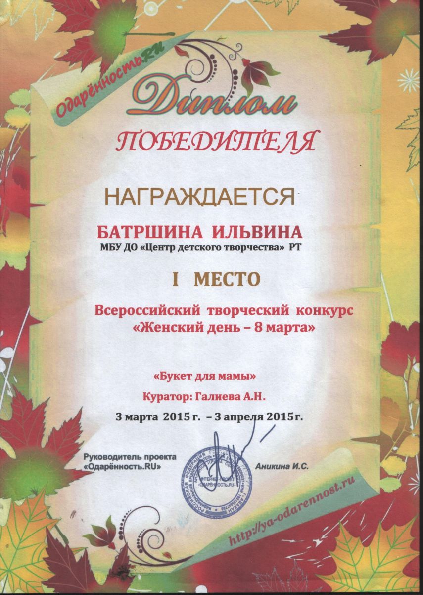 /Свидетельство участника в Республиканском фестивале искусств "Алтын куллар". (Галиева Ильнара).JPG