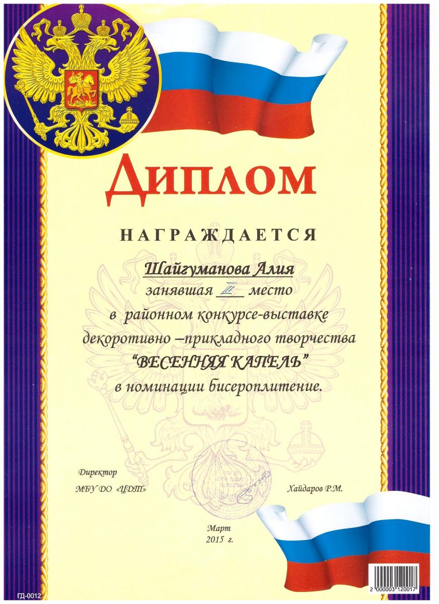 /Диплом 2 степени в районном конкурсе - выставке "Весенняя капель".(Шайгуманова Алия).jpg