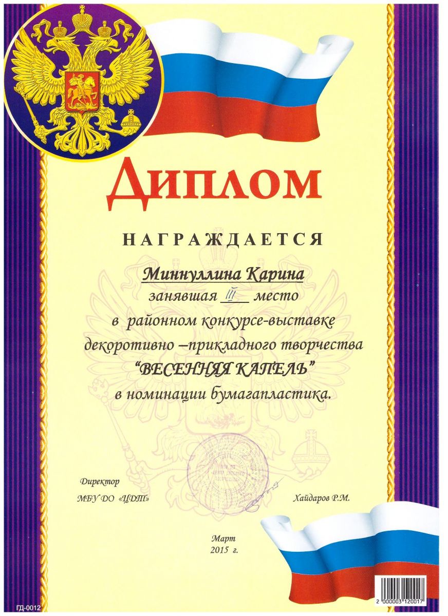 /Диплом 3 степени в районном конкурсе - выставке "Весенняя капель". (Миннуллина Карина).jpg