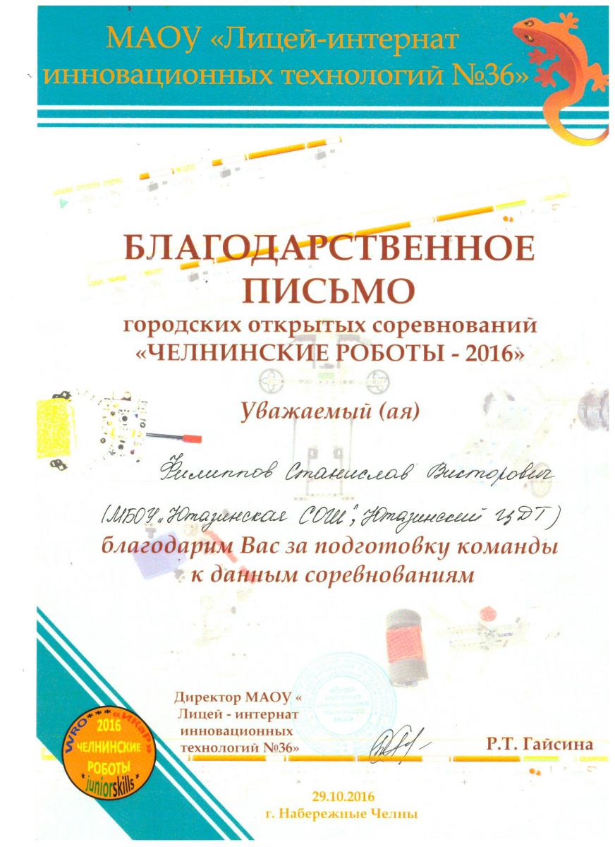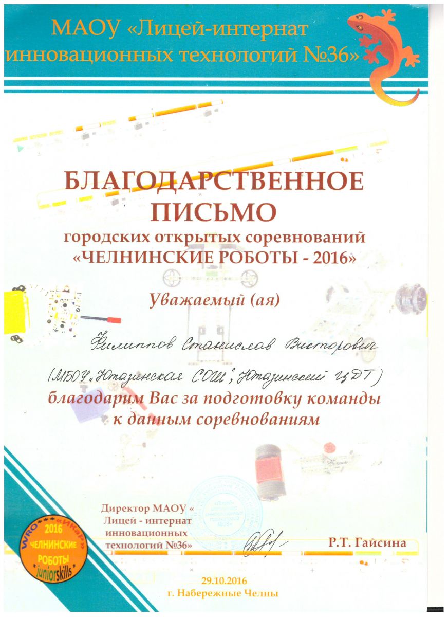 /Благодарственное письмо городских открытых соревнований "Челнинские роботы - 2016".jpeg