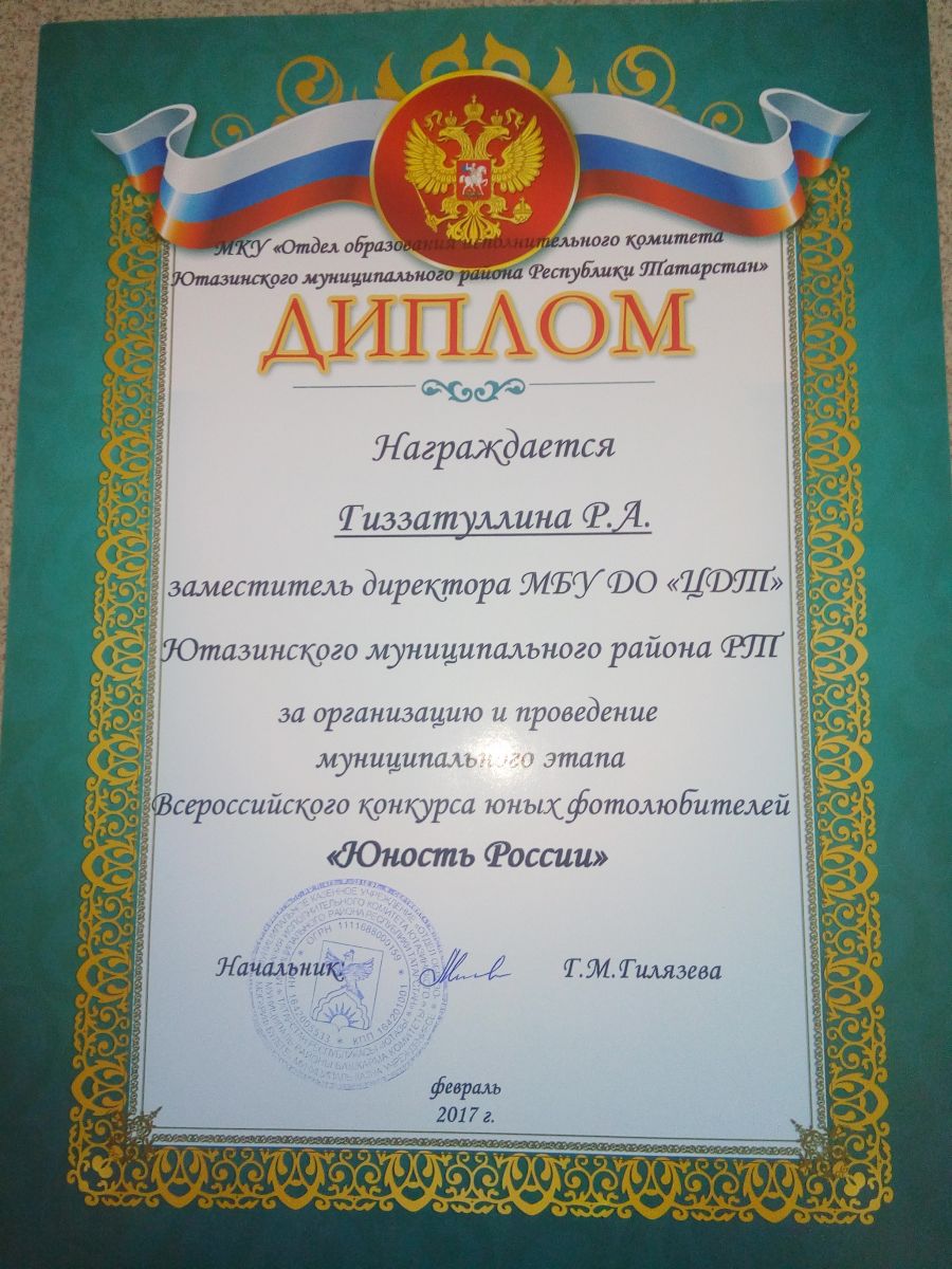 /Диплом за организацию и проведение муниципального этапа Всероссийского конкурса юных фотолюбителей "Юность России".jpg