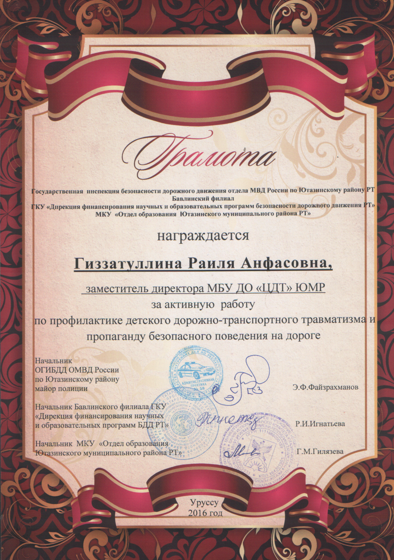 /Грамота за активную работу по профилактике детского дорожно - транспортного травматизма и пропаганду безопасного поведения на дороге.bmp