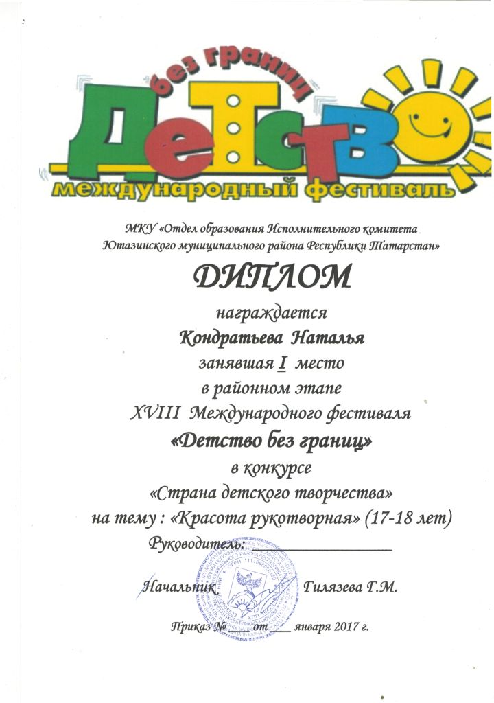 /Диплом 1 степени на муниципальном этапе Международного фестиваля "Детство без границ". Кондратьева Наталья.jpg
