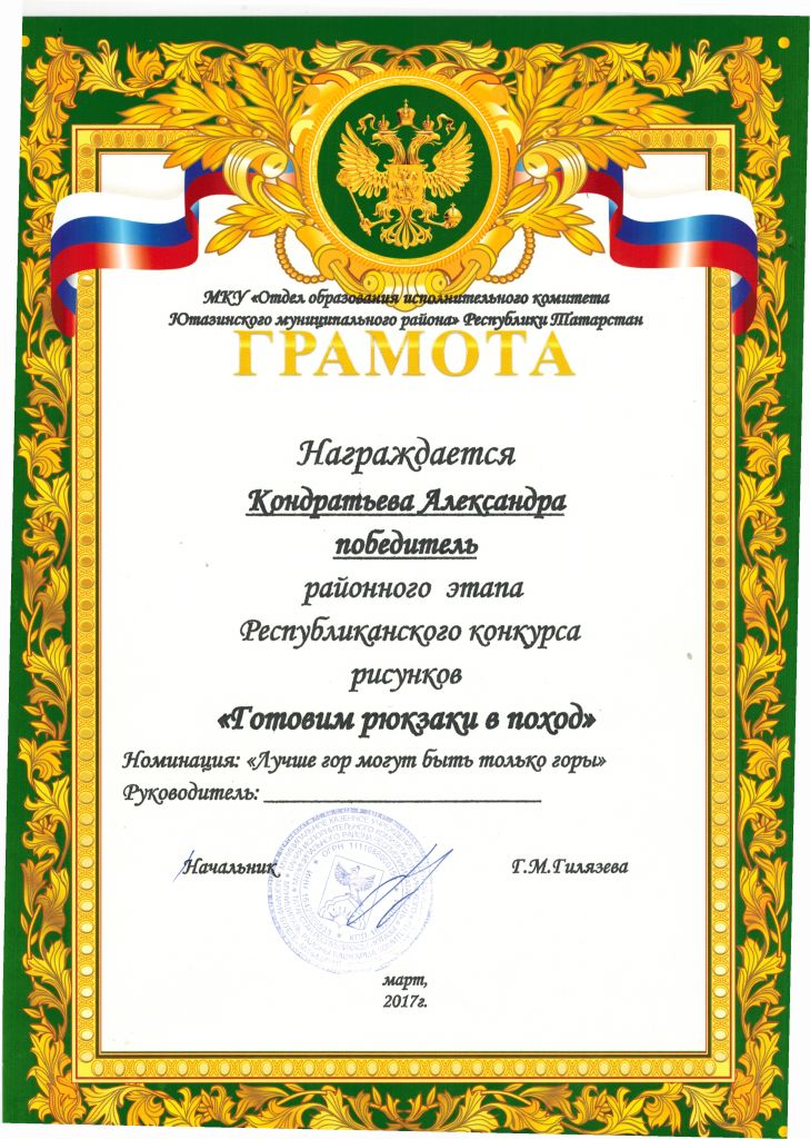 /Грамота районного этапа Республиканского конкурса рисунков "Готовим рюкзаки в поход". Кондратьева Александра.jpg