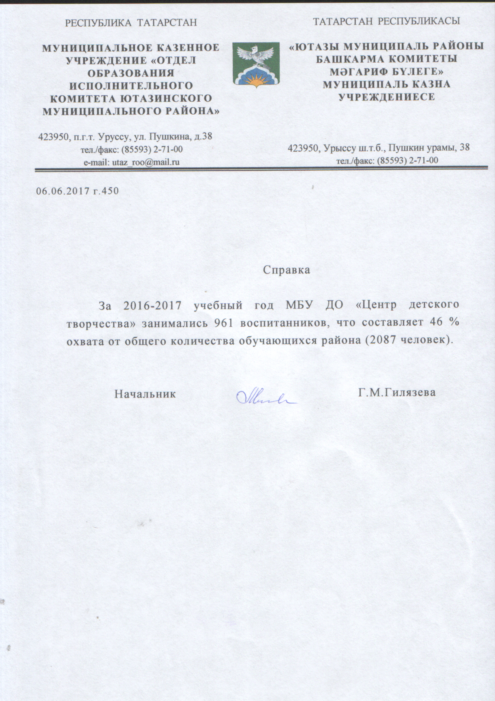 Муниципальное бюджетное учреждение дополнительного образования «Центр детского творчества» Ютазинского муниципального района Республики Татарстан/Татарстан Республикасы Ютазы муниципаль районы «Балалар иҗаты үзәге» өстәмә белем муниципаль бюджет учреждениесе