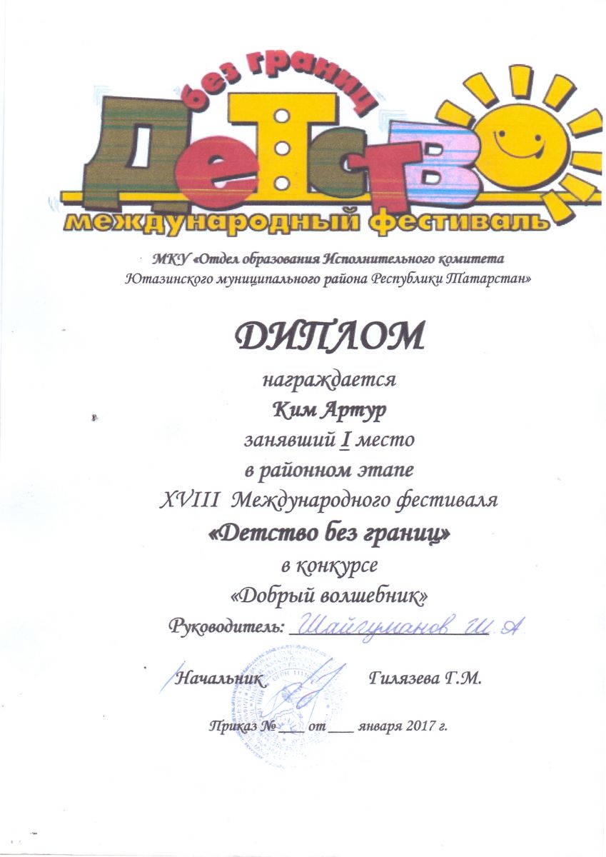 /Диплом 1 степени в районном этапе Международного фестиваля "Детство без границ".jpg