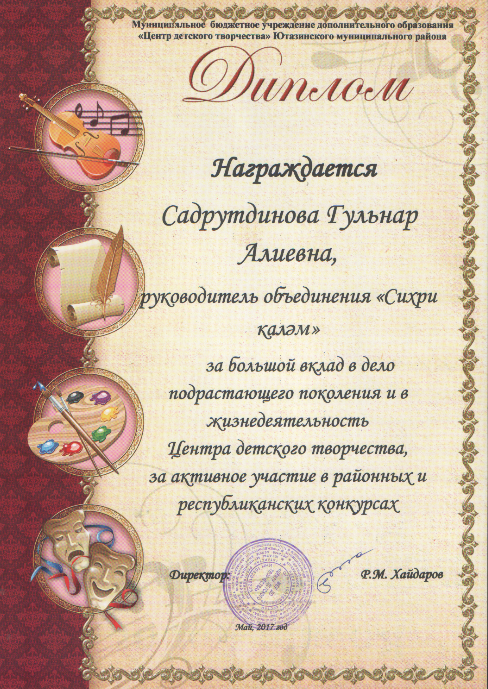 /Диплом за большой вклад в дело подрастающего поколения и в жизненедеятельность ЦДТ.bmp