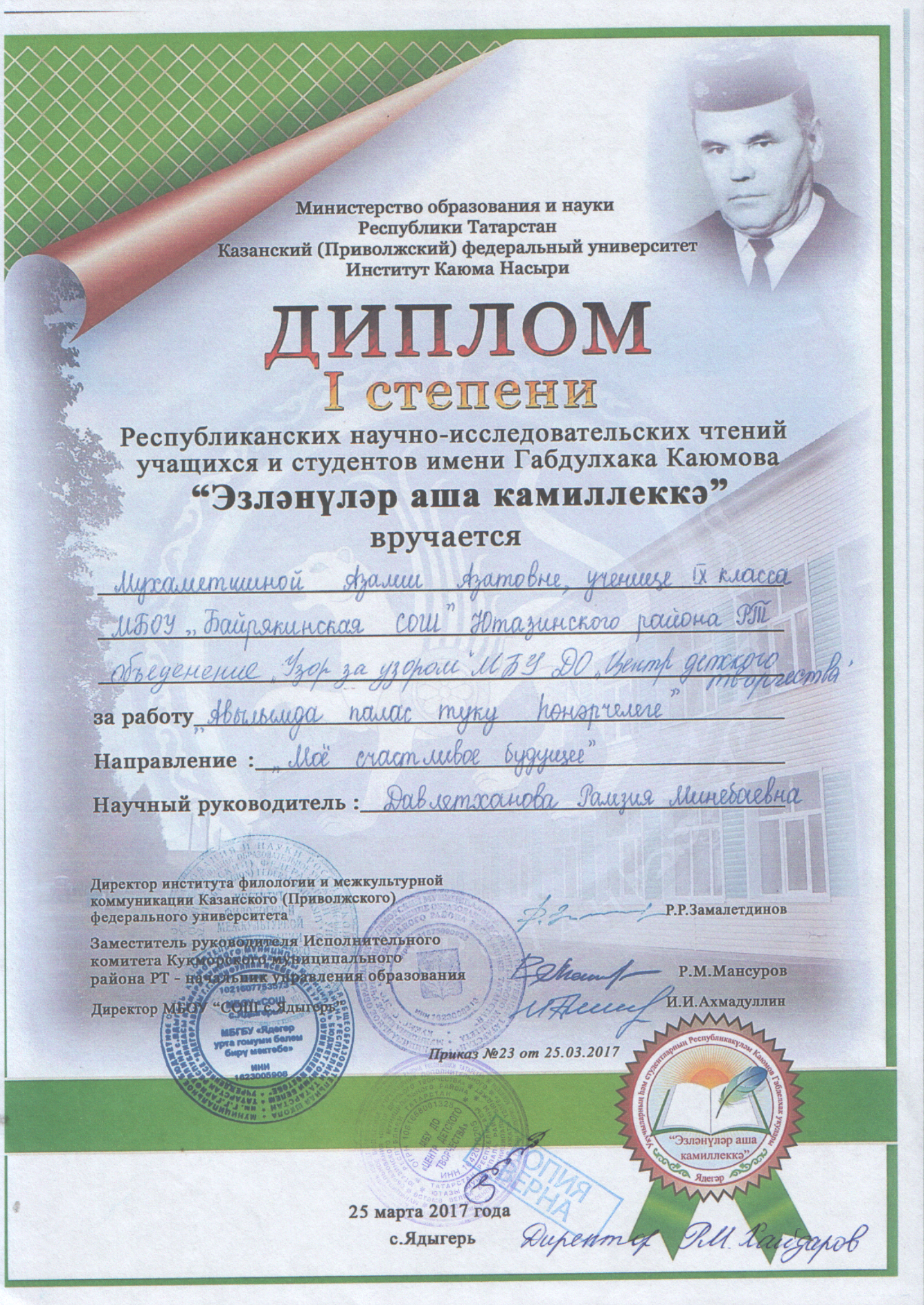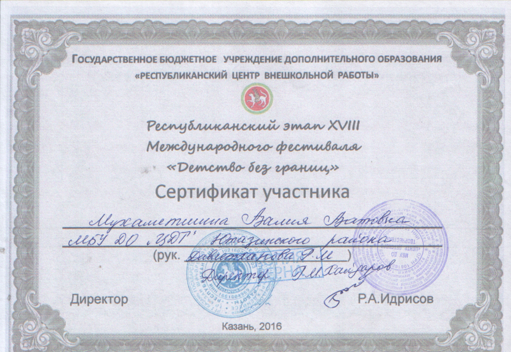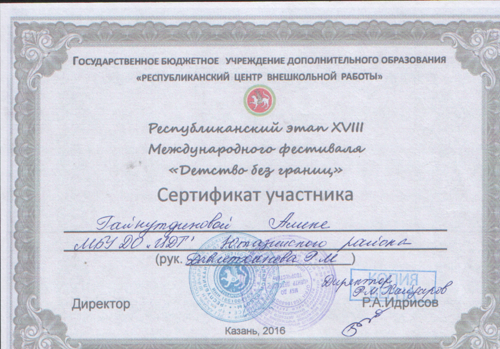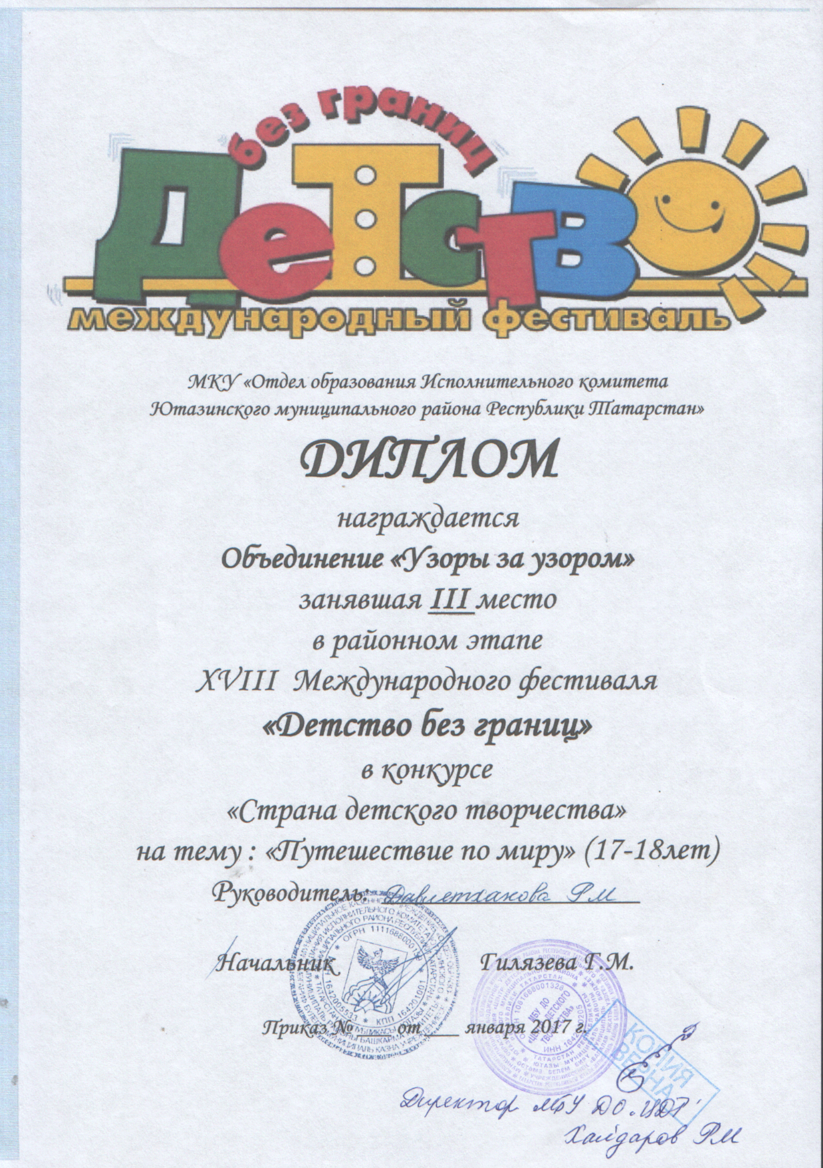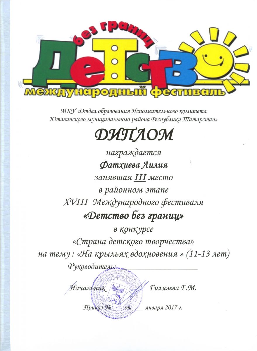 /Диплом 3 степени в районном этапе Международного фестиваля "Детство без границ". Фатхиева Лилия.jpg