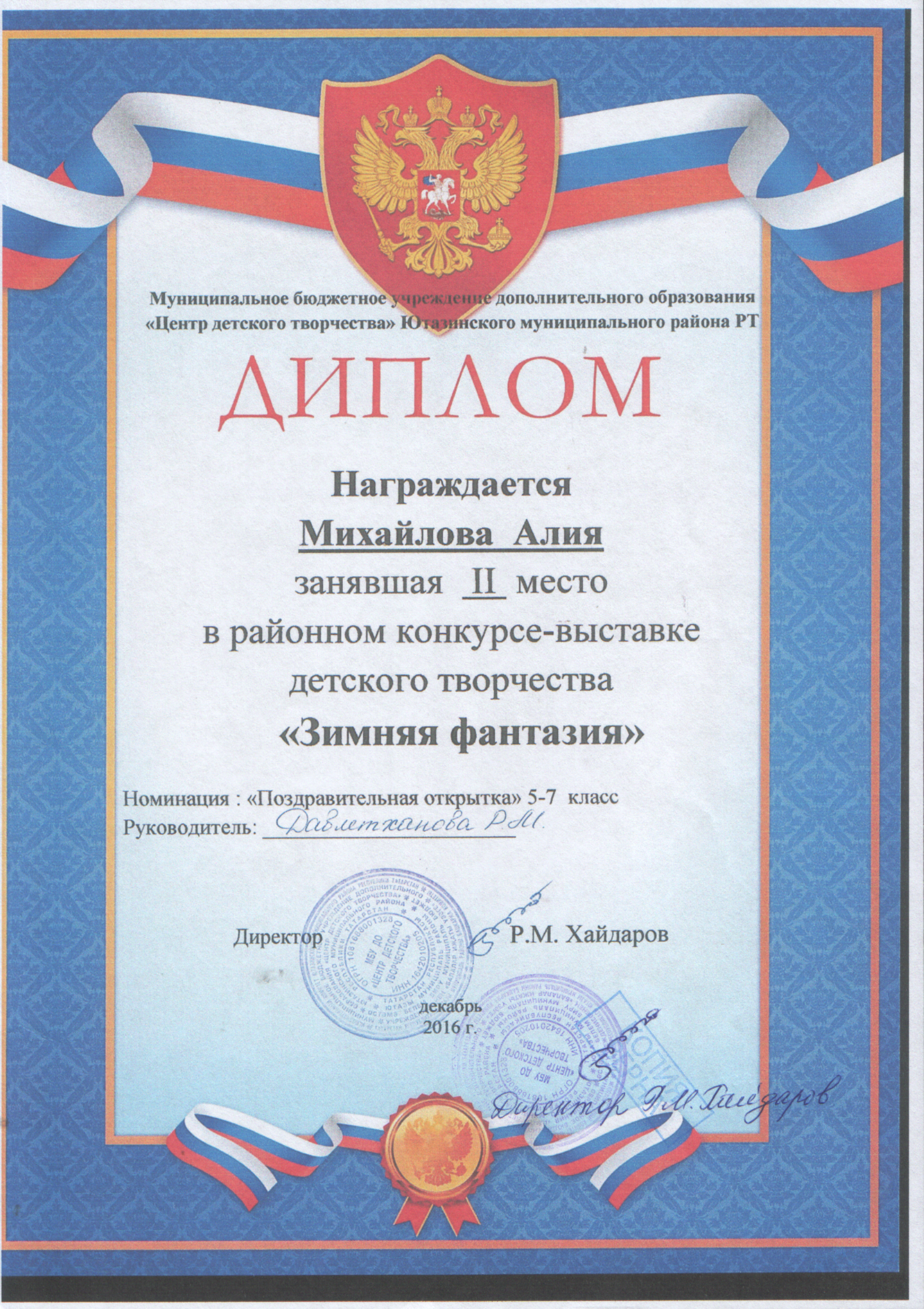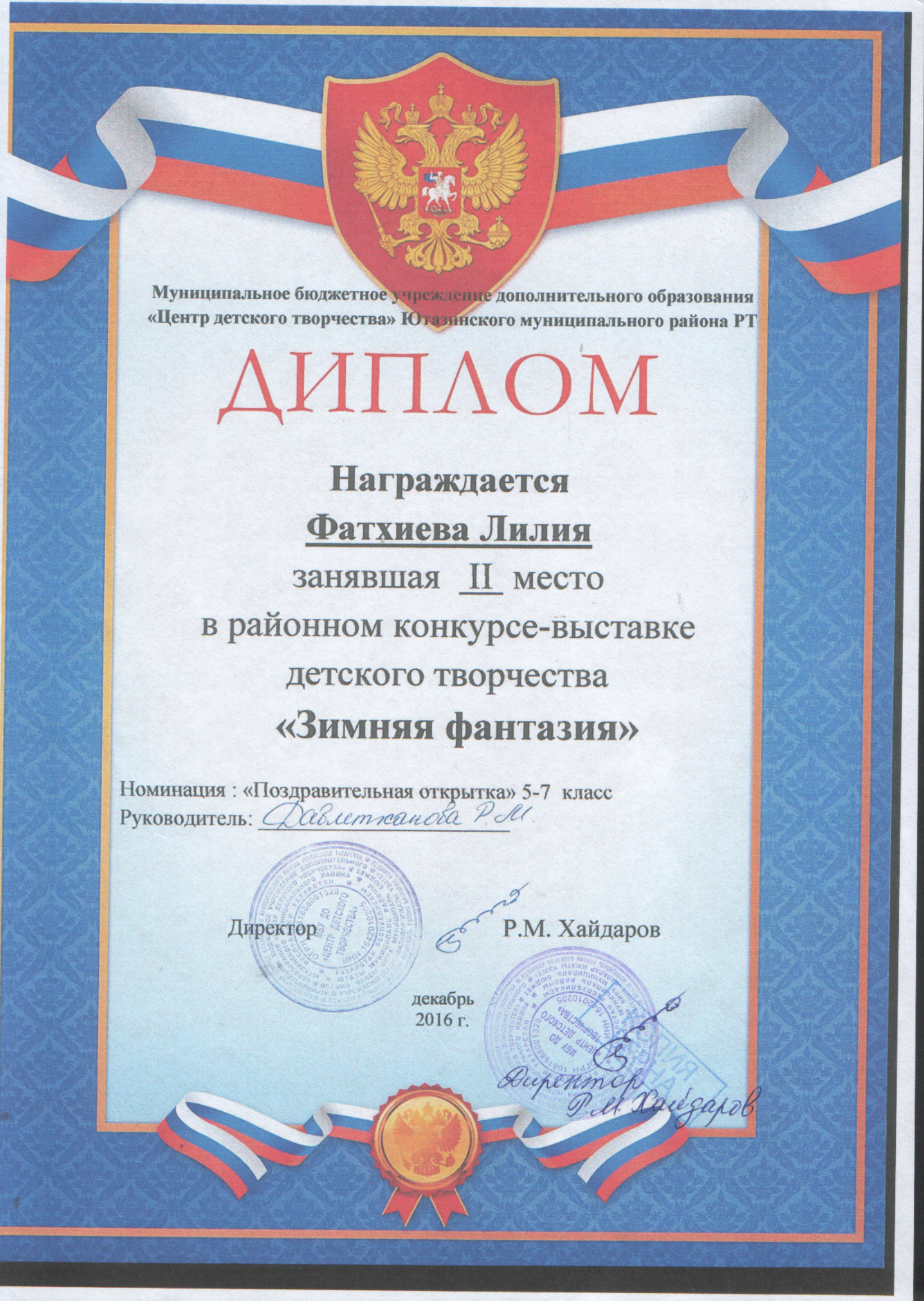 Муниципальное бюджетное учреждение дополнительного образования «Центр детского творчества» Ютазинского муниципального района Республики Татарстан/Татарстан Республикасы Ютазы муниципаль районы «Балалар иҗаты үзәге» өстәмә белем муниципаль бюджет учреждениесе