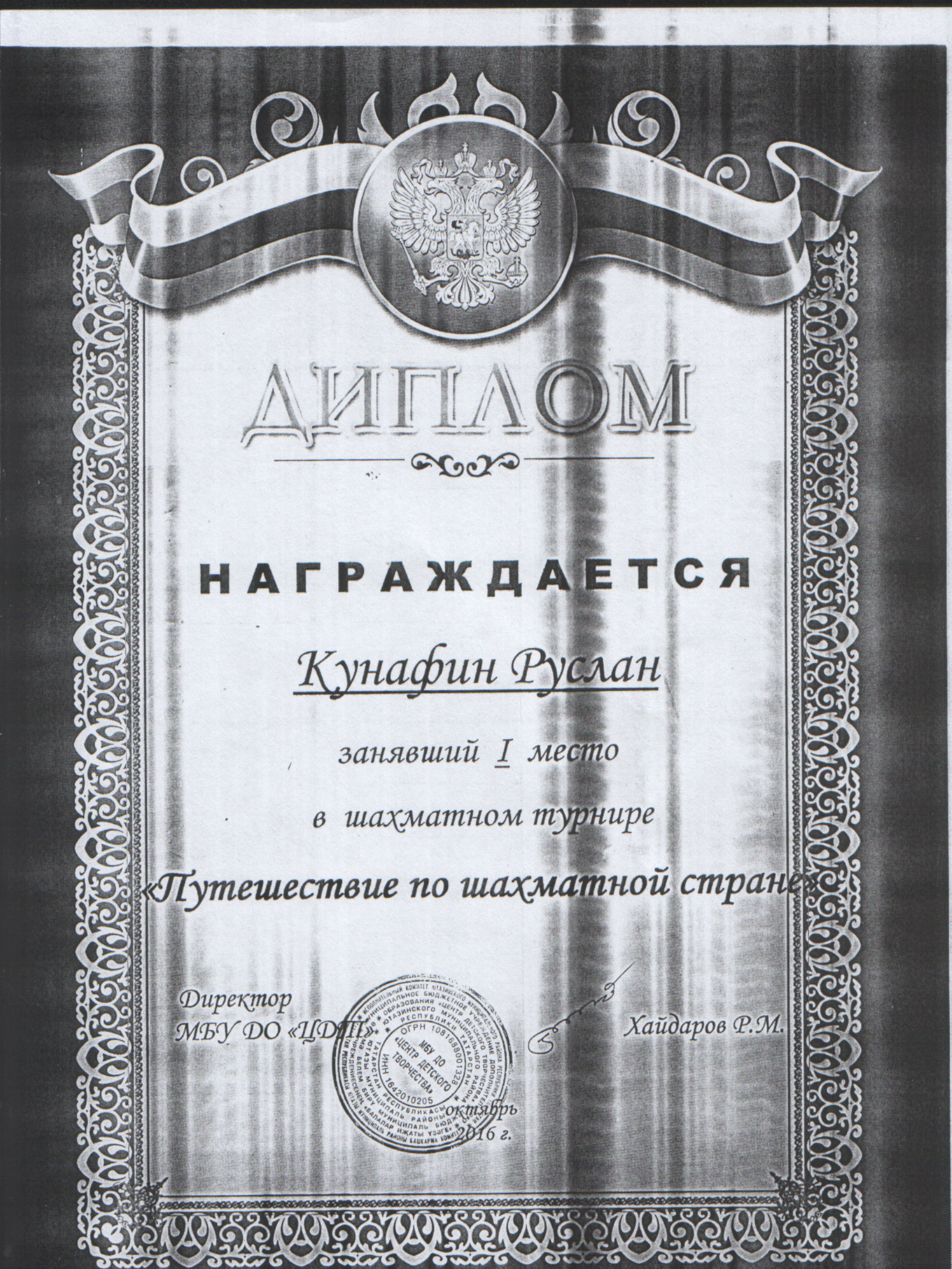 /Диплом 2 степени в шахматном турнире. Кунафин Руслан.bmp