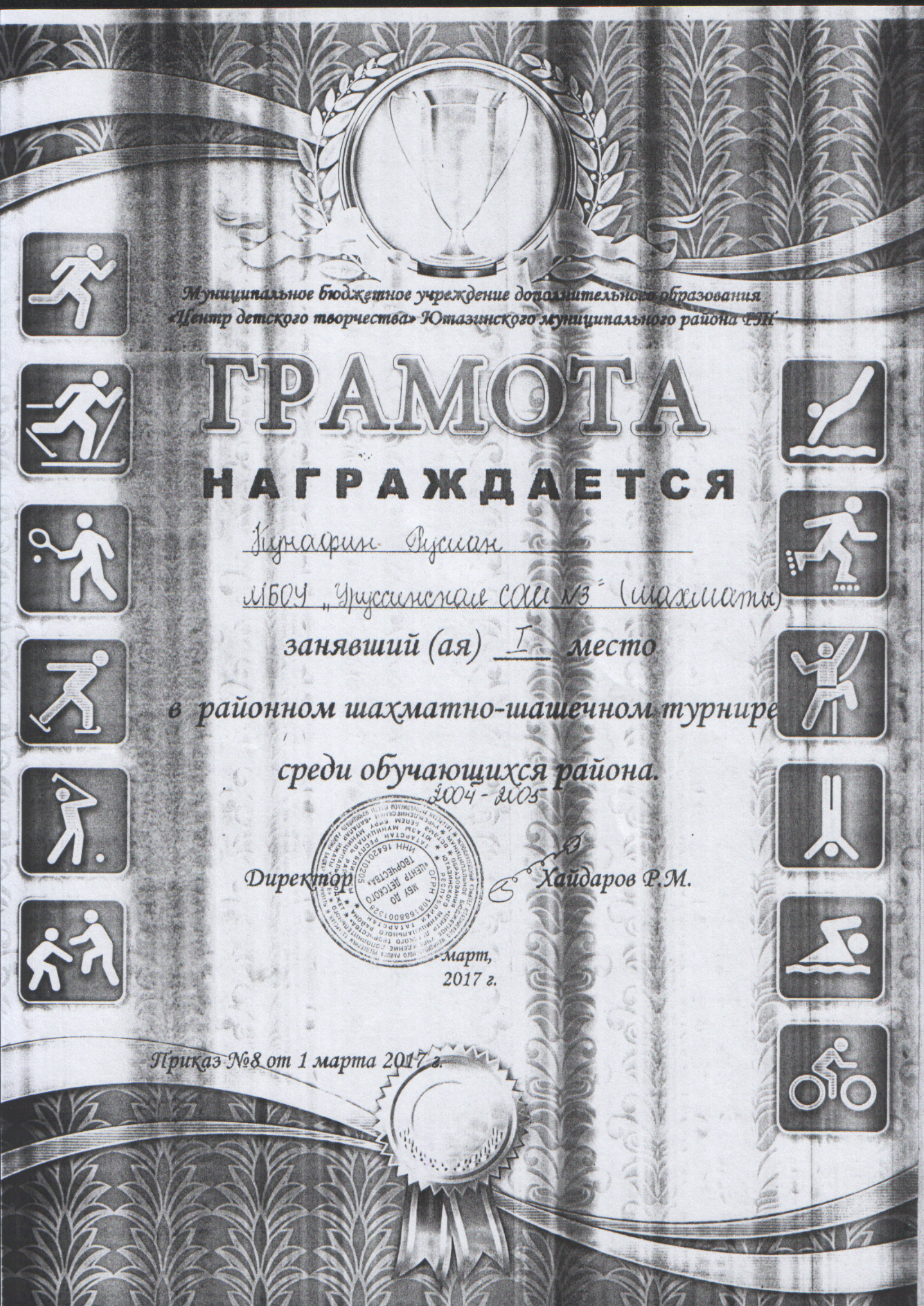 /Грамота 1 степени в районном шахматно - шашечном турнире. Кунафин Руслан.bmp